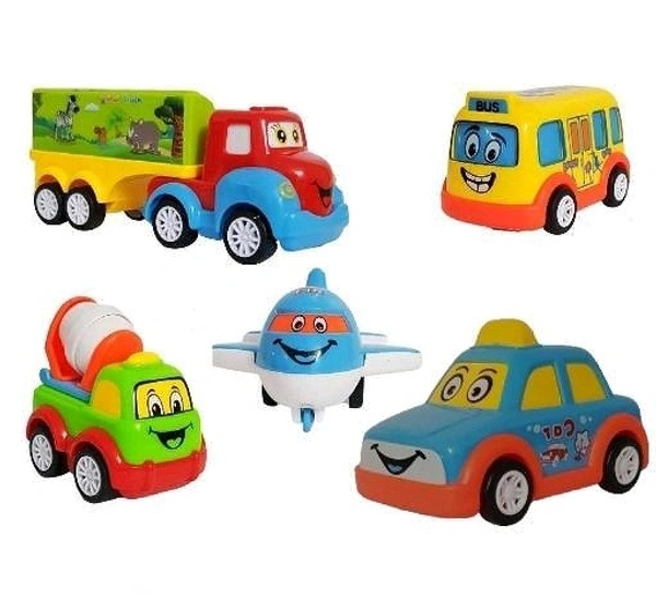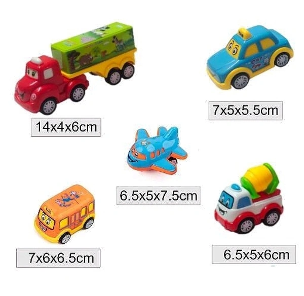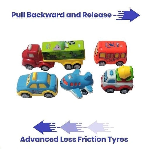 ADKD Friction Powered Pull Back Toy Vehicles Set of 5 - Multicolor