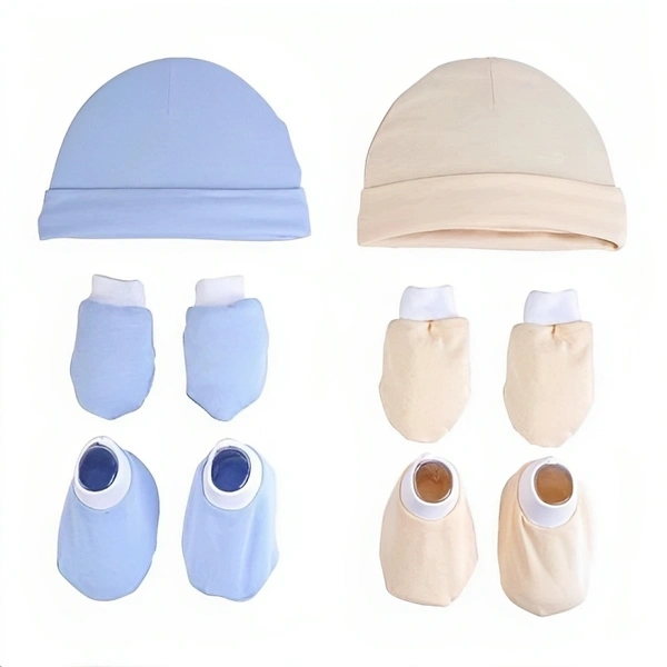 - Introducing the Babby Nest baby cap, mitten, and booties set, a must-have for your little one's comfort. This delightful set is meticulously crafted from 100% cotton fabric, ensuring a soft and cozy experience for your newborn.