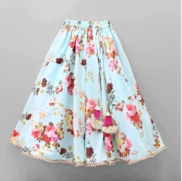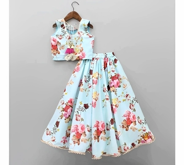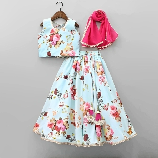 Introducing our Girls' Lehenga Cholis Pack - a delightful choice for young ones. This set includes a top, lehenga, and a net dupatta, all crafted from comfortable Cotton Blend fabric. The top showcases a charming print, while the lehenga boasts a lovely floral pattern. The sleeveless design adds to the appeal. The set comes in various sizes, from 0-1 years to 13-14 years, ensuring a perfect fit for your child. Ideal for occasions like Birthdays, Weddings, Diwali, Eid, and Christmas. Discover our trendy kids' collection from India and enjoy a delightful shopping experience.