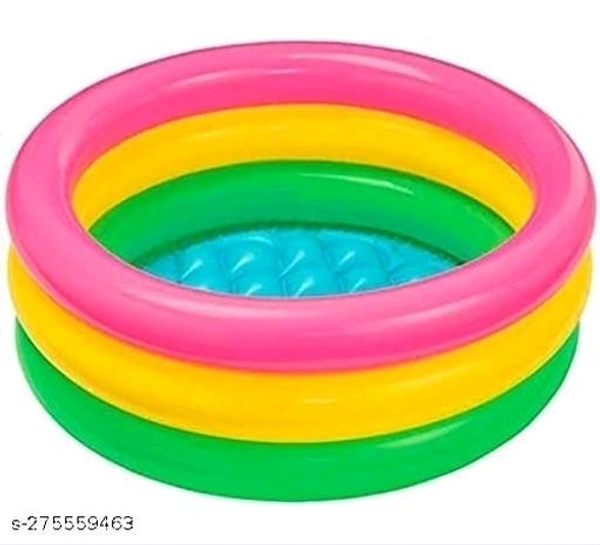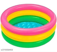 Kids Pool Make a splash this summer with the colourful Sunset Glow Baby Pool. This cute baby pool has three colourful air rings and a soft inflatable floor for comfort. Includes: Soft inflatable floor. Repair patch Approximate inflated size: 61in X 22in ( 2ft height) Age grading 1-3 years Summer Fun for Kids: The ring inflatable pool is the best choice for children to enjoy indoors and outdoors, against the hot summer days. It is an excellent summer toy for children. The new generation of kids pool toys! Make memories that will last a lifetime with Inflatable multicolour pool.